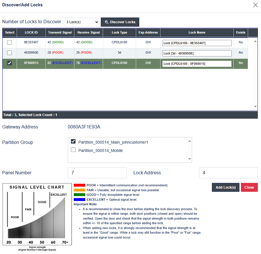 are assigned to the main partition. Select the lock serial number you want to add and click on Add Lock (s).