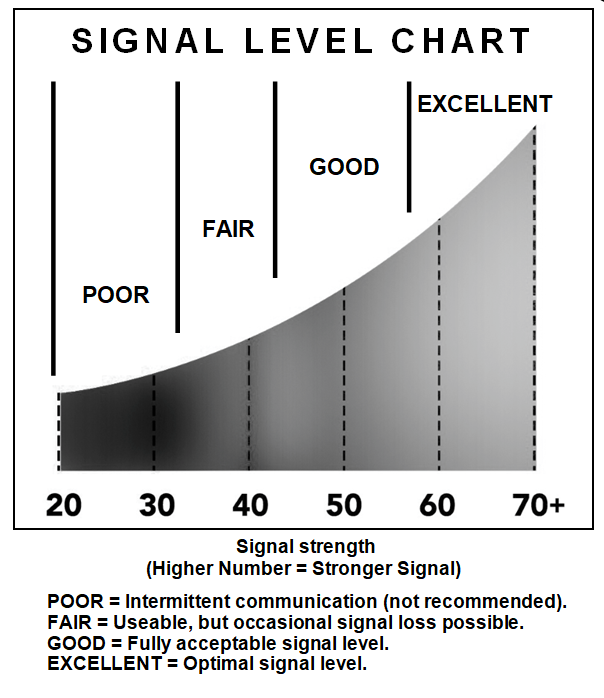 Under Configuration > Wireless Configuration, the Transmit Signal, Receive Signal and RSSI Indicates the signal strength for Locks, NetPanels and Expanders. For the best results, aim for a signal strength in the Good range (Fully Acceptable Range). Signal Strength between 32 and 42 are considered Fair, while values above 42 are considered Good. If necessary, relocating the gateway or adding optional expanders may help improve signal strength.