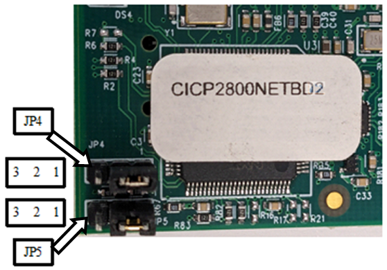 2. Move jumper JP4 to positions 2-3. (Note: JP5 must be on the right two pins 1-2)